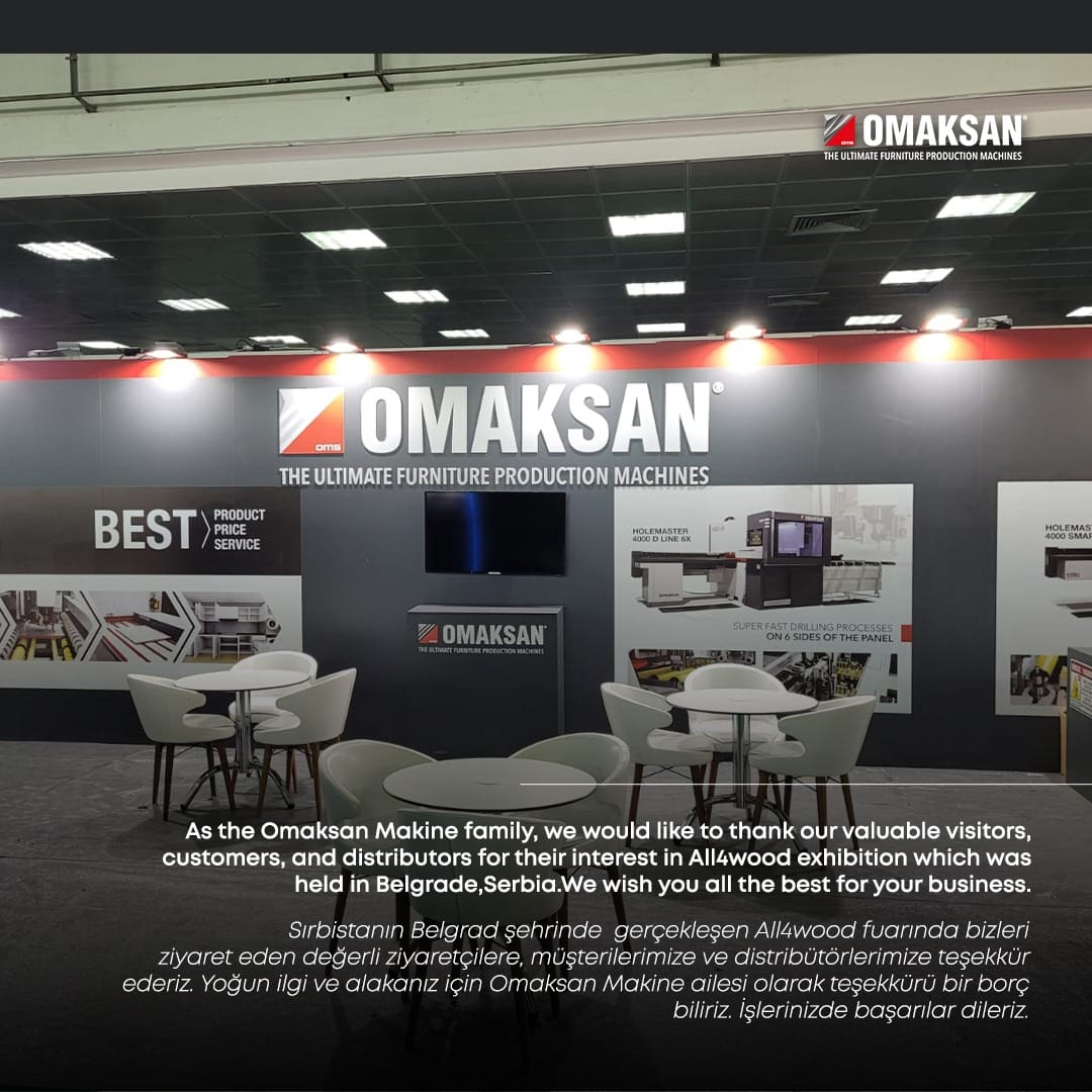 As the Omaksan Makine family, we would like to thank our valuable visitors, customers, and distributors for their interest in All4wood exhibition which was held in Belgrade,Serbia.We wish you all the best for your business.