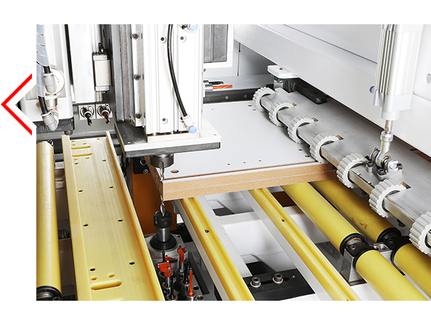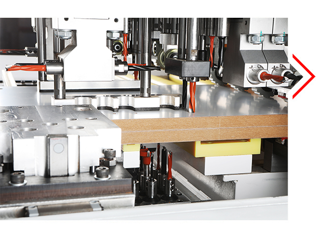 Holemaster 4000 C Line 6X Faster possesses 2 special designed upper boring heads which has 20 vertical,16 horizontal bits and 2 saw blades in order to carry out superfast drilling process on the top surface and 4 sides of the panel and 10 vertical bits lower boring head in order to perform drilling processes on 6 sides of the panel.